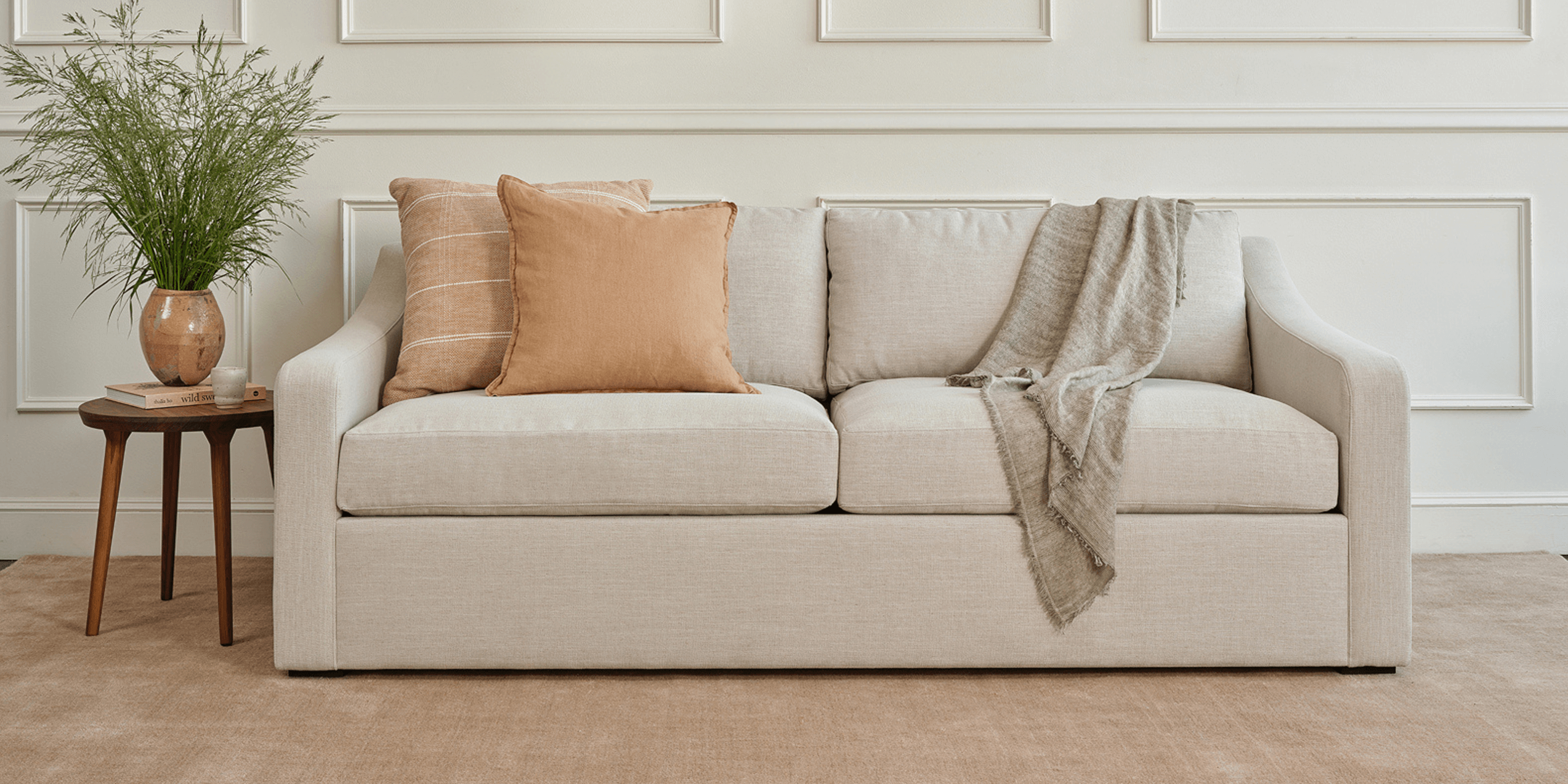 The first of its kind: furniture made with plant-based cushions wrapped in fluffy wool fiber. Comfy, durable, and perfect for anyone looking to embrace more non-toxic materials at home.